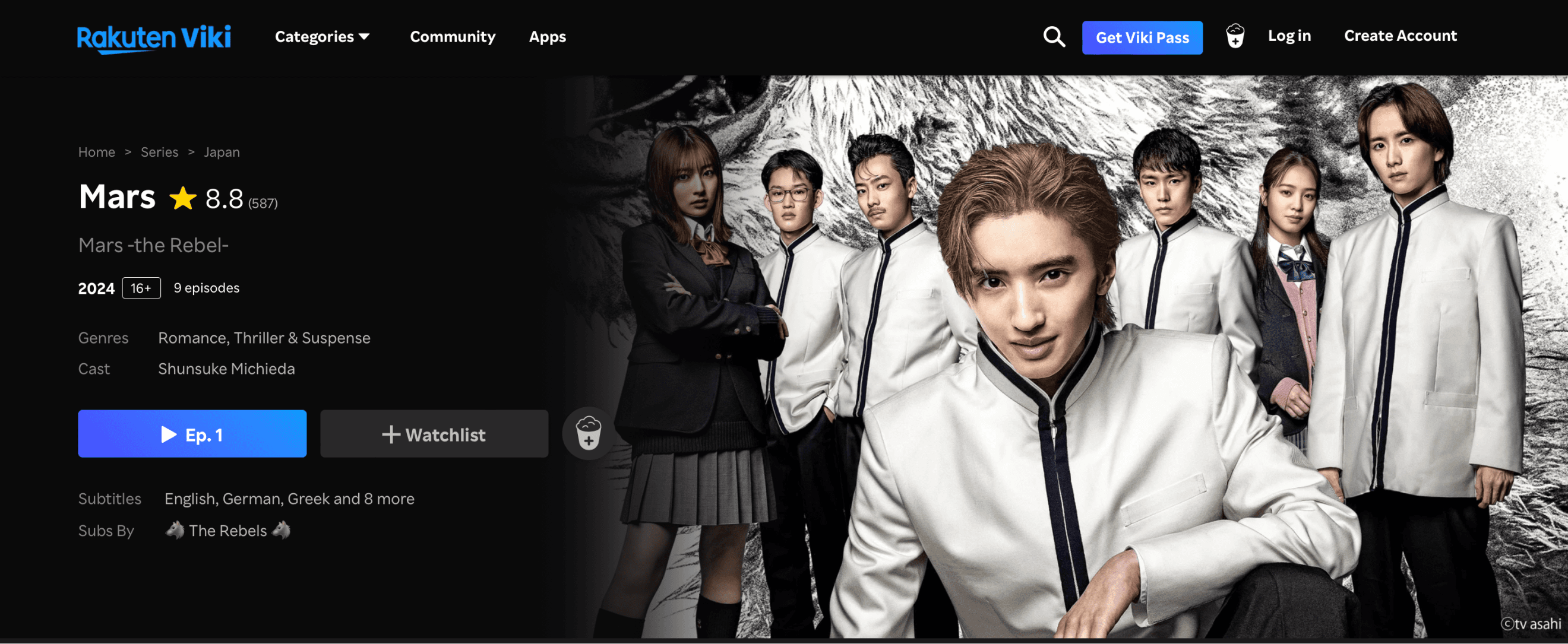 The drama Mars on Viki, featuring subtitles created by the team “The Rebels”